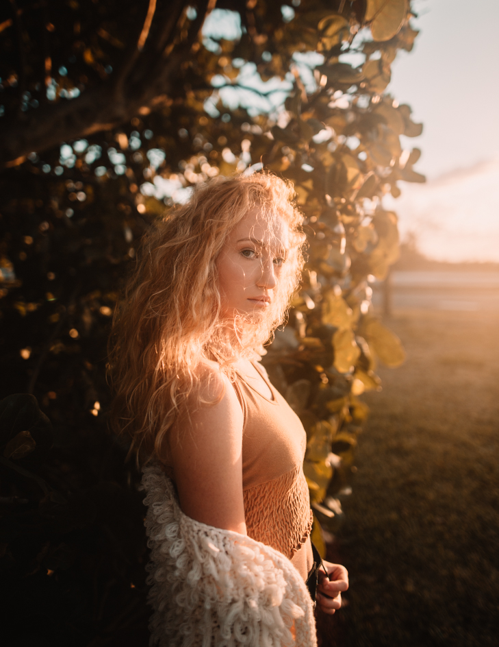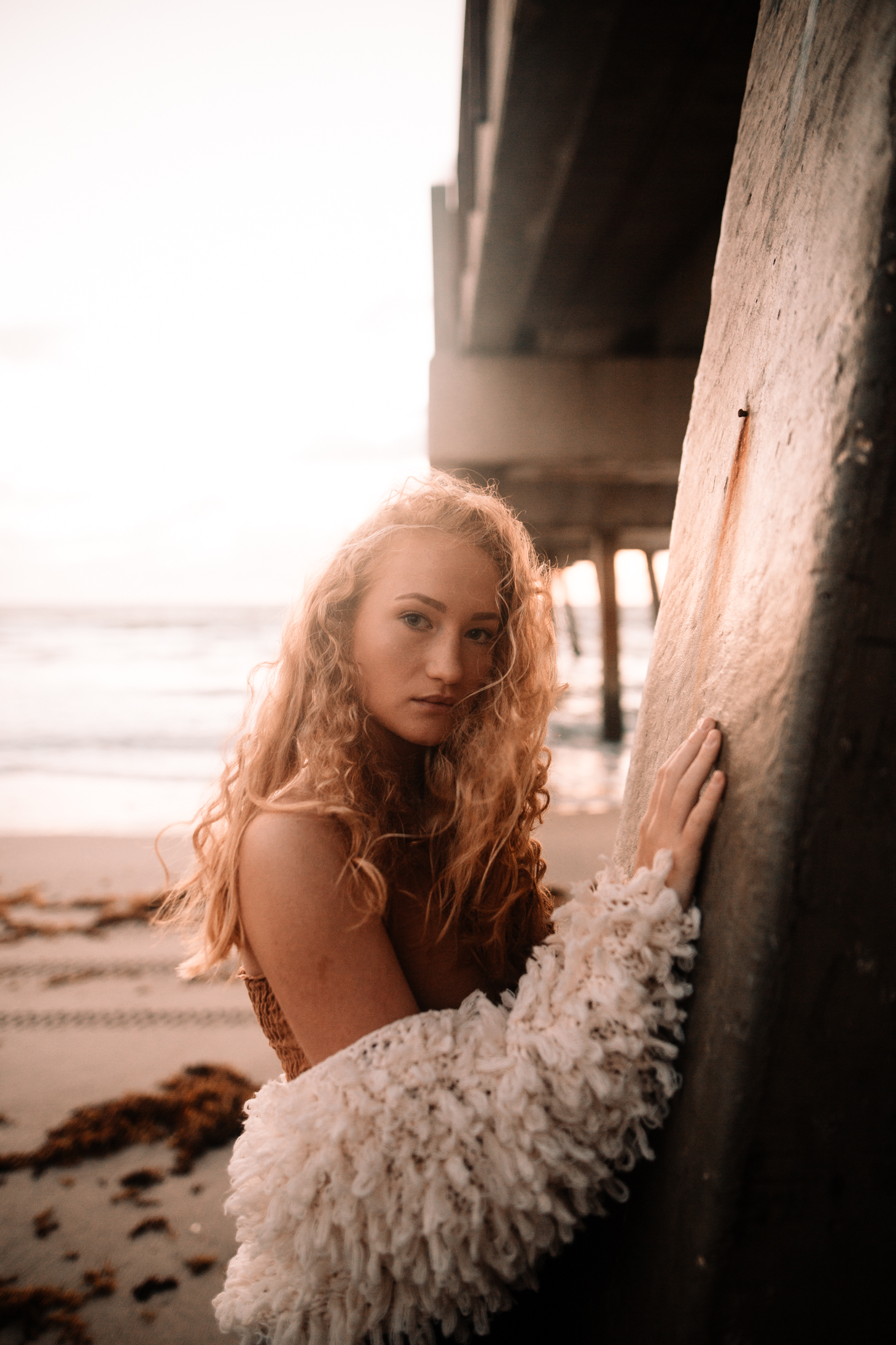 The first session was walking and shooting all over the beach and pier trying to get that golden light hitting her face.
